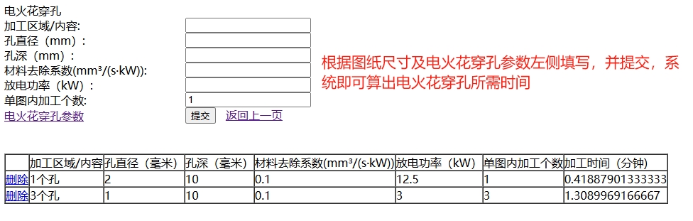 电火花穿孔时间