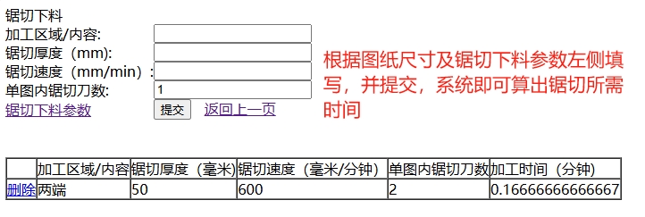 锯切下料时间