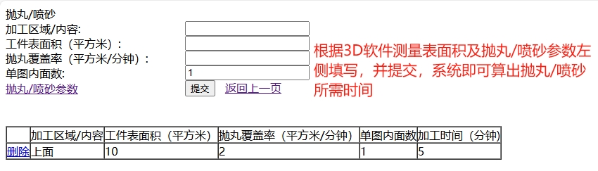 抛丸/喷砂时间