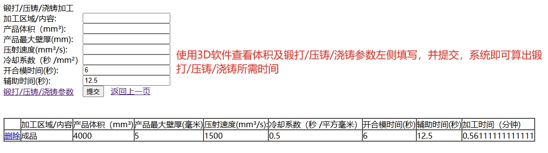 锻打/压铸/浇铸参数